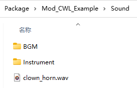 Soundフォルダー内のサブディレクトリはオーディオIDのプレフィックスとして使用されます。たとえば、AI_PlayMusicはInstrument/sound_idを使用するため、楽器音楽を置き換える場合は、同名のオーディオファイルをInstrumentフォルダーに配置してください。
