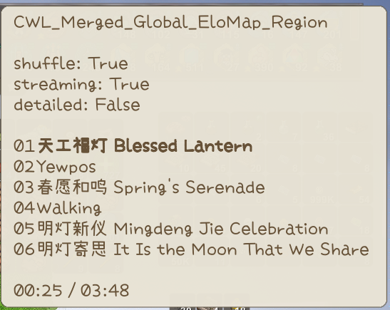 大マップ探索のすべてのデフォルト曲を削除し、新しい曲を追加したい場合は、Sound/BGM/Playlist/EloMap.json または Sound/BGM/Playlist/Region.json を使用します: